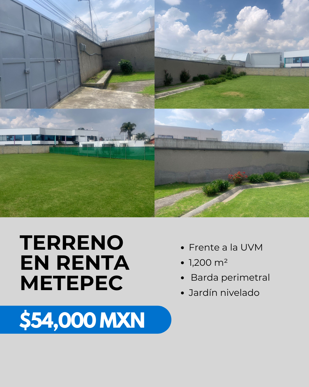 Bardeado, frente a UVM Metepec, 1,200m2